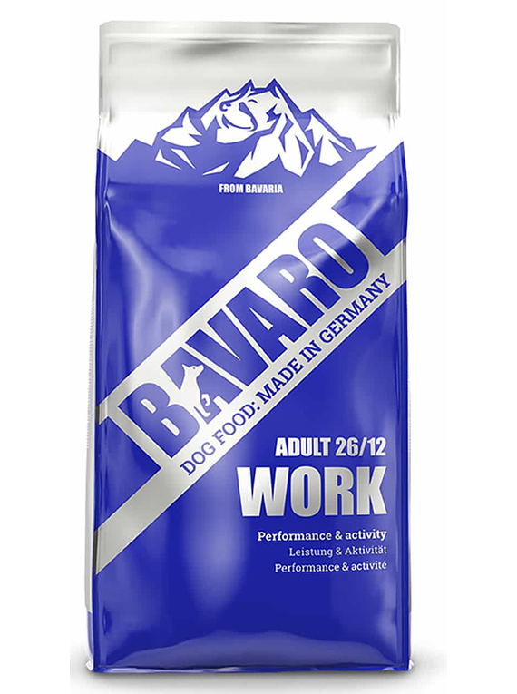 Bavaro Work es un alimento completo con alto contenido de energía y proteína para perros de trabajo que enfrentan demandas constantes dentro de su día. Si tu perro hace labores de caza, guardia, protección u otras faenas deportivas, este es el alimento para él. Esta línea de productos no usa ni soya, ni azúcar, ni organismos genéticamente modificados (GMO) y adicionalmente su único método para preservarlo en óptimas condiciones es el secado, esto quiere decir que tampoco tiene preservantes artificiales ni colorantes puesto que su sabor y color provienen de los materiales crudos de los que está compuesto.
